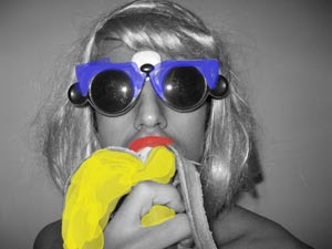 1 banana, 1 pala, 1 par de óculos de sol, 1 toalha